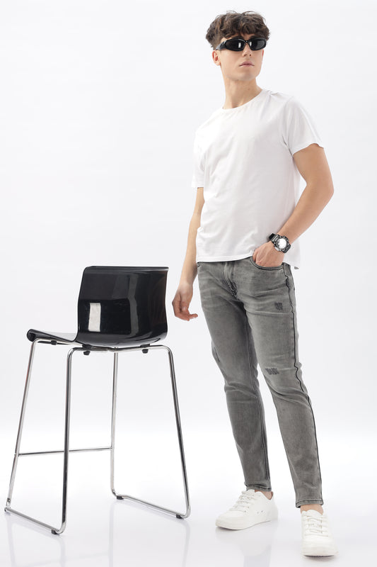 Charcoal Grey & Black Plain Baggy Fit Jeans